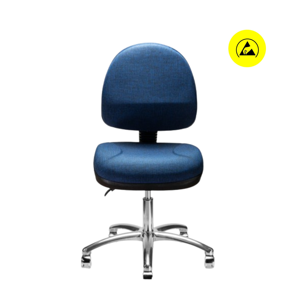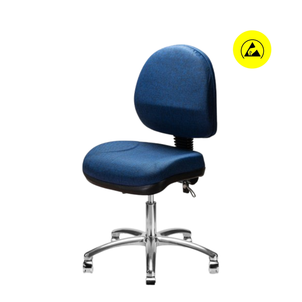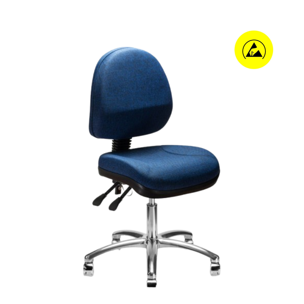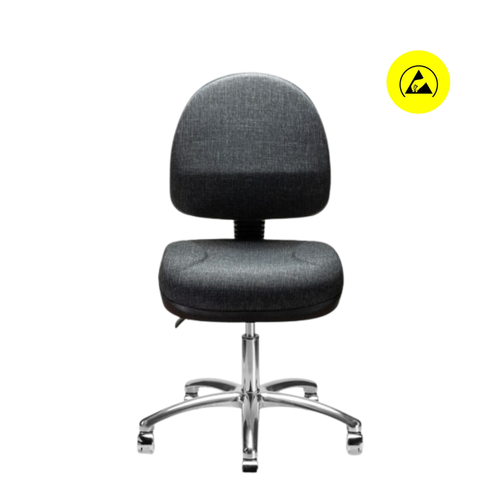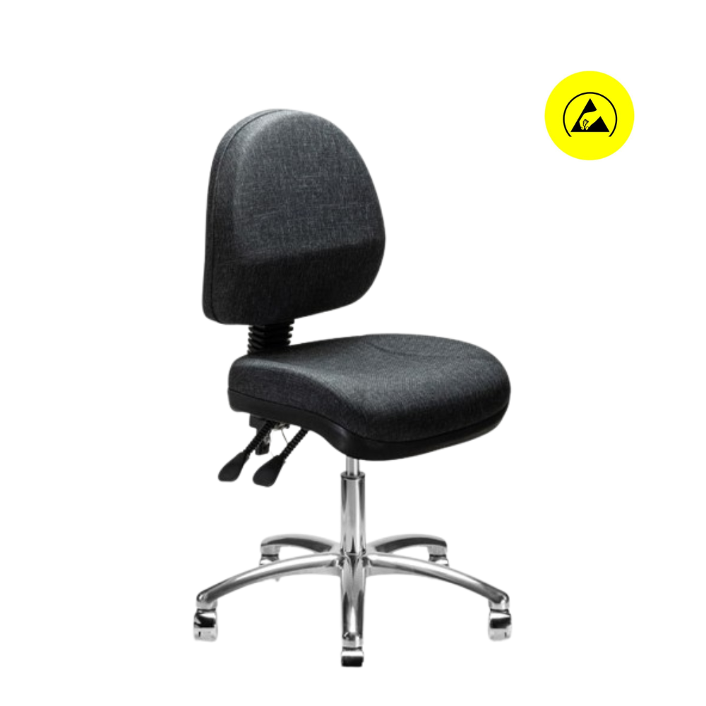 Silla giratoria 1942 B de respaldo medio, pistón neumático de ajuste de altura, ajuste de altura y reclinación de respaldo, acojinados de asiento y respaldo tapizados en tela antiestática y base de 5 brazos con regatones.- Silla giratoria industrial/ensamble electrónico.