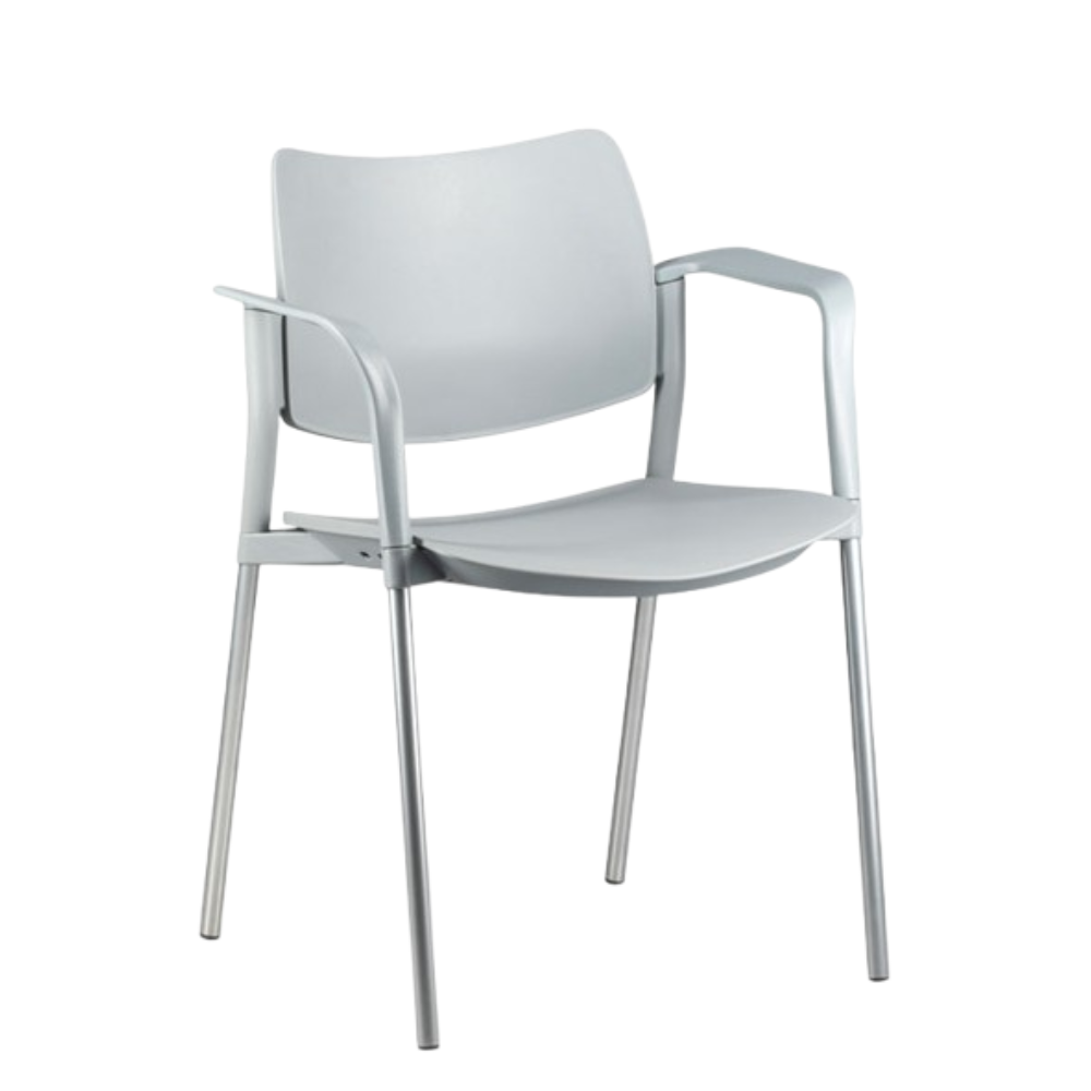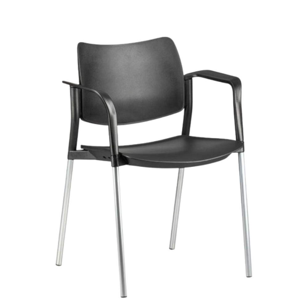 Silla apilable 4 patas 5060, respaldo y asiento en polipropileno negro / gris, base tubular gris.