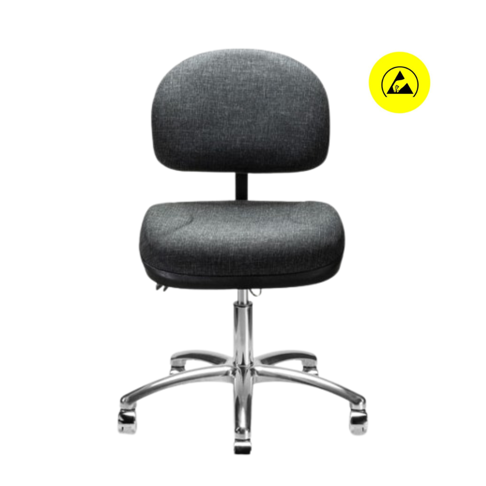 Silla 1932 B giratoria de respaldo bajo 1932 ESD, pistón neumático de ajuste de altura, ajuste de altura y reclinación de respaldo, acojinados de asiento y respaldo tapizados en tela antiestática y base de 5 brazos con regatones.
