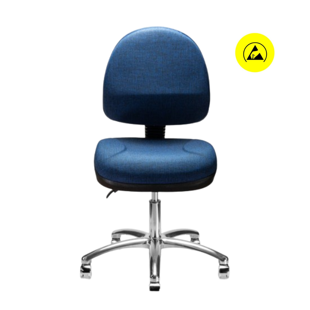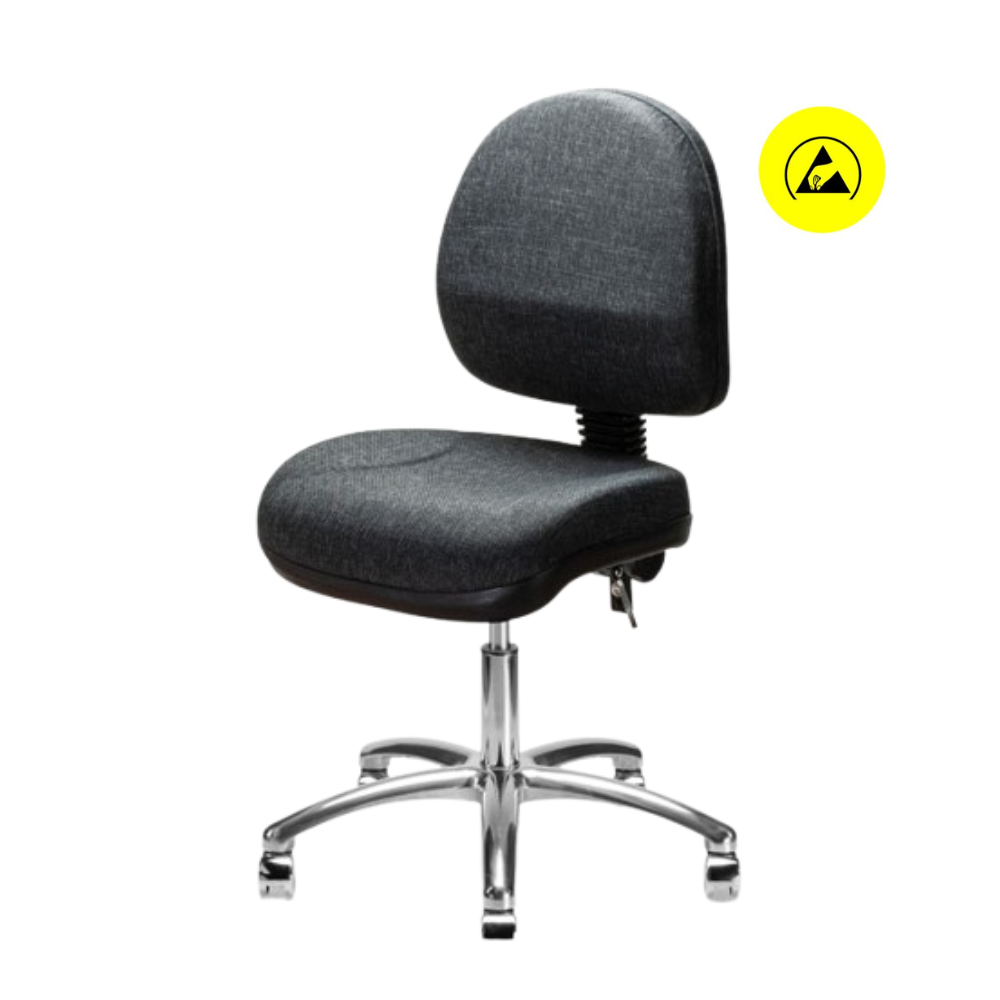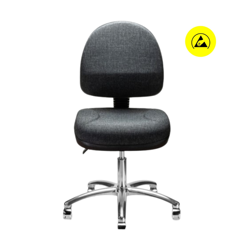 Silla giratoria 1942 B de respaldo medio, pistón neumático de ajuste de altura, ajuste de altura y reclinación de respaldo, acojinados de asiento y respaldo tapizados en tela antiestática y base de 5 brazos con regatones.- Silla giratoria industrial/ensamble electrónico.