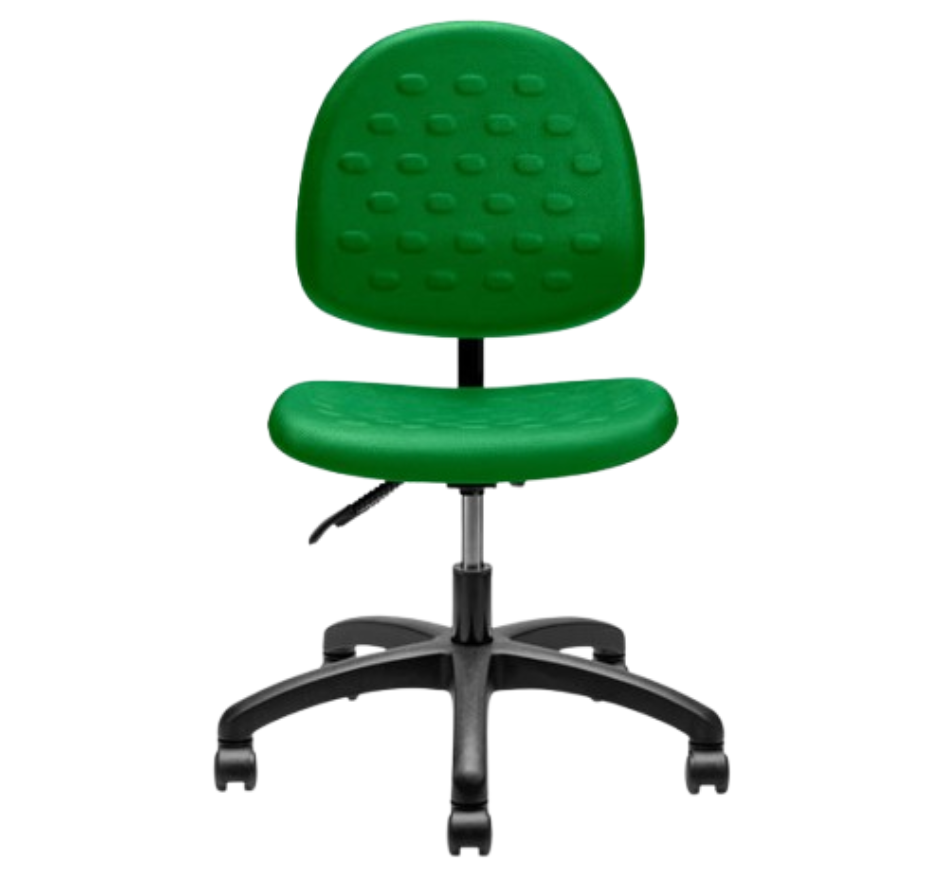 Silla giratoria, respaldo y asiento moldeados de poliuretano tipo piel integral, mecanismo de reclinación de respaldo, ajuste neumático de altura y base de 5 anclas con regatones o rodajas.- Silla giratoria industrial/laboratorio/ensamble.